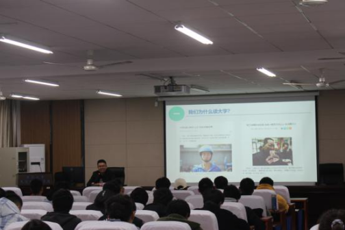 连老师就“我们为什么读大学?”、“大学生活如何度过?”、“未来考研还是就业?”等问题与同学们进行探讨,同学们很感兴趣,积极互动。