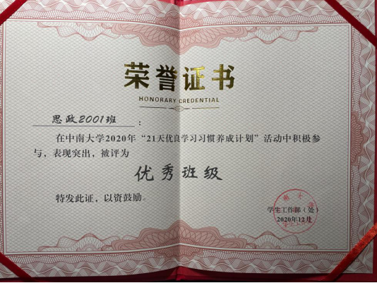 2020年12月22日,佳音频传,喜报常至。在英国威廉希尔公司“21天优良学习习惯养成计划”活动中,通过英国威廉集团官网全体师生的共同努力,我院荣获校级优秀单位,大一思政2001班获评优秀班级。全院师生的共同付出固然是我们这次获奖的前提,但在申报材料方面上的成功撰写也是其中不可磨灭的重要因素。