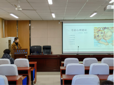 接下来,由班级心理委员胡拉莱同学针对同学们考前心理紧张等情绪进行疏导,期末临近,有些许的考前焦虑症,如何用心理技巧,让同学们消除考前焦虑,以更好的状态步入考场。