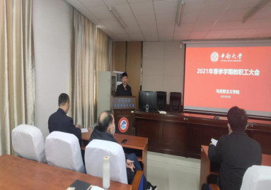 最后由王翔院长对2020年学院工作进行总结,并提出2021年的工作规划。2020年,学院坚决贯彻落实学校政策,做到疫情防控学院发展两手抓、两不误。王翔院长从党委工作、学科发展、人才引进、财务管理、本科教学、研究生教育、科研成果、学生工作、行政后勤保障、其他工作等多维度全方面地向全体教职工做了汇报。展望2021年工作,学院将围绕“十四五”发展规划不断加强新时代思政课和学院建设,新学期、新征程大家收心攒劲加油干!