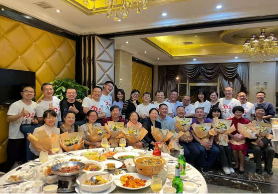 岁月如歌,相聚话深情。晚上校友们邀请了学院老师参加晚餐聚会。学院副院长周小清老师代表学院热烈欢迎政治学0701班校友们能够在十周年之际返校,向校友们致以美好祝愿。周院长向大家介绍了学院近些年取得的成就,表示学院高度重视毕业生校友工作,一直以来十分惦记着大家毕业后的成长,希望校友们要常回家看看。同学们一一向学院报告了十年来各自的成长历程,并再次感谢学院的悉心培养和老师们的辛勤付出。树高千丈必有根,同学们表示学院是我们永远的家,浓浓的师生情谊我们会铭记于心。同学们向参加聚会的老师送上了鲜花,表达对老师的感恩之情,并同学院领导老师合影留念。