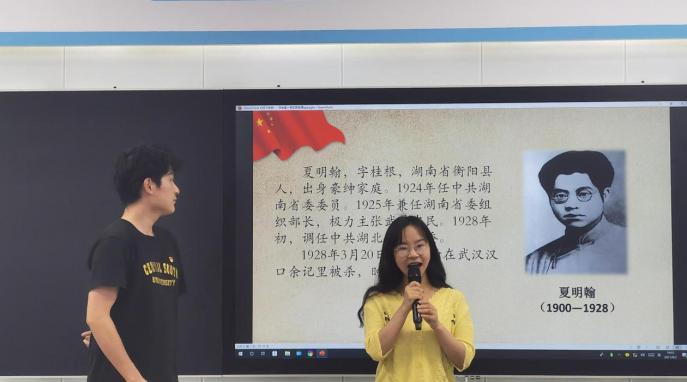 随后,学生第一党支部书记陈力瑞与副书记吴冬梅讲授党史学习教育的微党课,以夏明翰的故事为切入点,指出全体党员要善于从党史中汲取精神上的“钙”,将其融入共产党人的血脉,内生为坚定的政治方向和强劲的前行动力,自觉扛起为人民谋幸福、为民族谋复兴的历史重任,步稳力沉,永不懈怠。