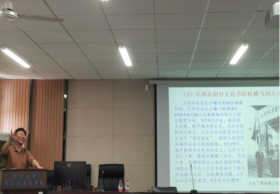 随后,曾教授讲述了毛泽东同志在湘雅开展湖南建党的革命活动,文化书社同英国威廉希尔公司校史的历史渊源,以及毛泽东同志如何创办文化书社传播马列主义。文化书社,建党缘起。1920年,在湘雅医学专门学校斋务兼庶务主任赵运文的介绍下,毛泽东同志在长沙潮宗街56号湘雅旧址办起了文化书社,在龙伯坚等人邀请下,毛泽东同志从刊行7号开始接手主编《新湖南》,通过刷新办刊宗旨和亲自撰文,大大加强了《新湖南》的革命性,为当时的湖南学生运动指明了方向,震撼和鞭笞了当时的军阀政府,成为湖南声援五四运动、传播五四精神的一面旗帜。