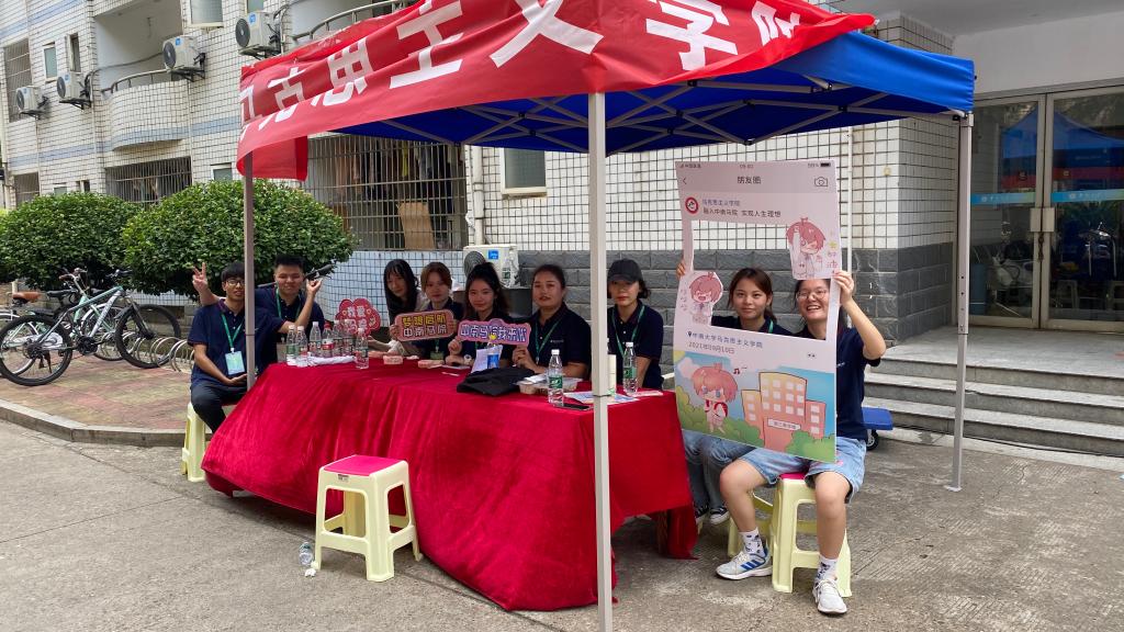 9月9日早晨,迎新工作正式开始,身着藏蓝色马院文化衫的志愿者身影在校园中不间断地穿梭着、忙碌着。每天早晨,志愿者们便早早到达迎新点,帮助新生们搬运行李,并把他们送到相应的宿舍。