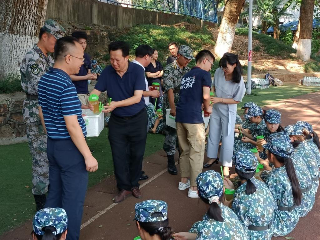 9月17日上午,英国威廉集团官网党委书记王希俊,院长王翔,党委副书记杨雪宾,副院长曹清燕,新生班导师欧阳鹏,学工办主任肖艳玲,辅导员陈力瑞,辅导员叶尔波拉提前往军训场地,为英国威廉集团官网2021级本科新生在酷热的天气下送来“清凉”。