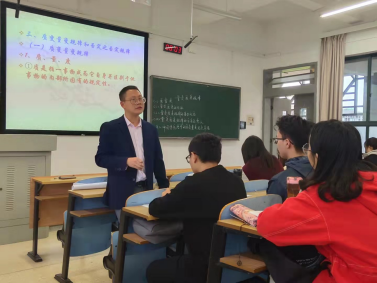 王学荣老师授课内容是“马克思主义基本原理”课中的“质变量变规律”。王老师首先从“质”“量”“度”概念讲起,接着深刻阐释了“质”“量”“度”的内涵、基本内容和方法论意义。王老师讲课呈现出三个显著特点,一是讲课的主题主线比较鲜明。他将毛泽东的《矛盾论》《实践论》作为辩证法学习研究的范本,在课堂上不时提及,敬意之情溢于言表。二是讲课有深度。他在诠释辩证法精髓时,对“形而上学”进行了深入剖析,介绍了黑格尔的名著《小逻辑》,并对其他形而上学流派人物、观点也如数家珍般地和盘托出。三是理论联系实际。他教育学生在把握事物“度”的时候,要注意对事物变化分寸的掌握,“过犹不及”(超过或达不到)不足取,“中庸”才是正道。接下来,进一步指明了“度”的方法论意义:“弱者错过良机,智者抓住良机”,指导学生在人生节点上要敢于突破,敢于超越自我,敢于有所作为。听课专家、老师们均为王学荣副教授渊博的学识、深邃的理论功底所折服。同时也指出,该堂课所讲授内容过深,超出了本科生的认知和接受能力;且理论背景交代过于冗长,这在一定程度上弱化了讲课重点。但老师们一致认为,这只是教学方法上的不足和瑕疵,只要进行适当调整,瑕疵必将克服,教学效果会更好。