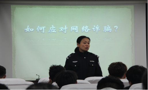 会议第一项,长沙市岳麓区派出所的李慧雅警官给同学们宣传防诈防骗及人身安全知识。首先,李警官从刷单视频切入,揭秘刷单“套路”,提醒同学们在对待刷单信息时要做到:“避免盲从、提高警惕、拒绝违法。”随后,李警官根据岳麓区的受骗状况,以实际案例呈现了当前诈骗案件的严峻形势,并结合我校的电信诈骗案例指出:“随着社会的发展与进步,诈骗也逐渐形成完整的产业链条,具备成熟的诈骗体系,希望同学们不断加强安全意识,及时止损,不让骗子有机可乘。”紧接着,李警官还讲解了电商诈骗、社交软件诈骗、恋爱诈骗、投资理财诈骗等典型骗局,提醒同学们要擦亮双眼、精准识别。
