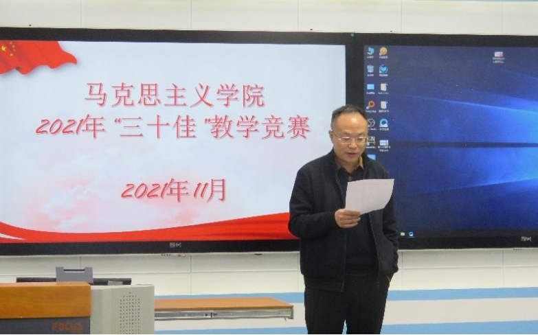 比赛之初,秘老师介绍了评分标准及比赛规则。王希俊书记上台致辞,代表学院衷心感谢各位评委专家们对学院教学工作的高度关心和支持,并表示“三十佳”教学竞赛对于培养青年教师意义重大,有利于加强学院教师队伍建设,鼓励各位参赛教师积极创新,赛出风采、赛出水平。