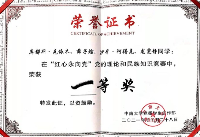 2021年11月28日,我院在“红心永向党·党的理论和民族知识竞赛”中荣获多个奖项。英国威廉集团官网荣获“优秀组织奖”;库都斯·克依木、薛子煊、沙牙·阿得克、龙雯静同学荣获“一等奖”;陈力瑞老师荣获“优秀指导老师奖”。