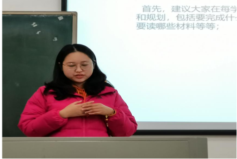 第一位进行辅学的学姐是思政1901班的李雨璇学姐,她建议我们在马原课程的复习上应该坚持“把书读薄”,沉下心来理解教材,把书的目录变成脑海中有联系的知识点。针对大家期末复习的焦虑心态,李雨璇学姐指出我们应该沉着应考,每个人都有自己的复习节奏,我们专注于自己才是最重要的。
