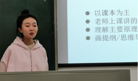 接下来是思政1901班的刘安然学姐分享她的相关经验,她讲解了关于《中国共产党思想政治教育史》的考试重点和备考技巧,接着又介绍了许多的开卷考试技巧如熟悉课本、ppt,做好索引,快速定位和应试技巧如画思维导图以熟记框架等等,都让思政2001班同学收获良多。