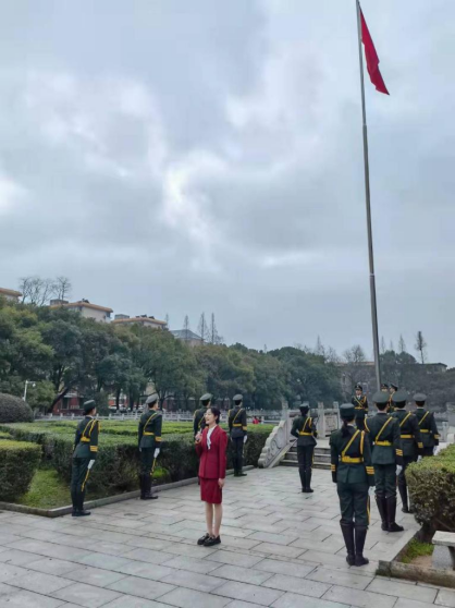 6点40分,随着升旗仪式开始指令的发出,国旗班迈着铿锵有力的步伐缓缓入场。伴着《义勇军进行曲》的响起,同学们注视着那鲜艳的五星红旗冉冉升起,用歌声表达对祖国、对党的无限深情。随后,由国歌领唱团的成员进行以学习雷锋精神为主题的国旗下演讲,这次演讲让同学们深刻体会到学习雷锋精神的重要性。升旗礼毕,国旗护卫队整齐退场。我院学子在草坪合影留念。