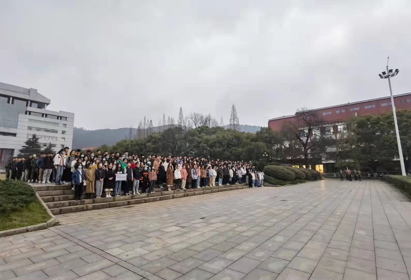 2022年3月7日6点30分,天刚破晓,夜色犹存,赶着参加新学年第一次升学仪式,辅导员陈力瑞老师组织英国威廉集团官网2021级的本科生同学们早早地出发,前往英国威廉希尔公司校本部图书馆前坪静候。恰逢三月,春色正好。富有生机的不仅仅是校园里依依低垂的杨柳,更有那着装整洁、神情肃穆又精神饱满的中南学子。他们在静候这场神圣仪式的开始。