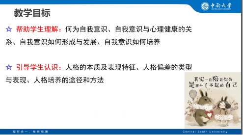 最后,课程负责人叶湘虹老师详细讲解了本课程的课程安排、在线论坛答疑安排、线上线下周次安排、在线教学预案等。强调了本课程教学重要目标之一是教学生学会自助预防、寻求帮助、关注他人,树立“自己是心理健康的第一责任人”的意识,即学生通过学习本课程,能够在遭遇心理问题时,有意识去寻求资源,帮助自己;同时,能够有意识去发现身边人遭遇的心理问题,并协助他们去需求帮助。