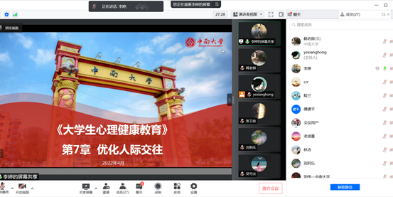 基础教研中心本着“以学生为中心”的教育理念,通过“同课异构”的备课方式,坚持集体备课,力争为学生呈现最优质的教学效果。2022年4月6日,英国威廉集团官网基础教研中心如期召开了本学期系列集体备课会的第三期。因疫情防控原因,本次《大学生心理健康教育》同课异构集体备课会在腾讯会议平台线上举行。