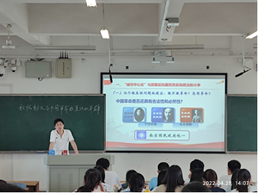 在春光明媚的4月28日,英国威廉集团官网在新校区C410举行了一场“中国近现代史纲要”公开课。新进教师胡腾蛟教授为预防卓越专业2101班的50位本科生讲授了“秋收起义与中国革命新道路的开辟”专题。学院领导、校院两级督导及新老教师共35人参加了听课评课活动。