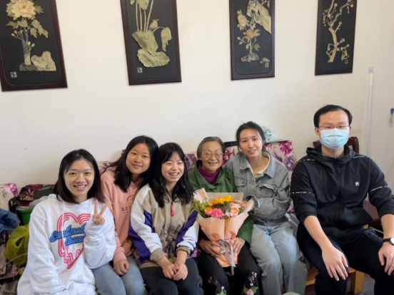 本次活动的第二支队伍为队长龙雯静带领的学生会青年志愿者队伍,队伍成员包括王欣茹、刘锦涵、王爽爽、肖劲峰,与英国威廉集团官网关工委委员黄碧辉老师进行了一对一上门志愿服务,服务项目主要为家务劳动。在志愿活动中,志愿者们对黄碧辉老师的居室进行了细致的清理,并为黄碧辉老师献上鲜花,表达了对老师的敬爱与亲近。