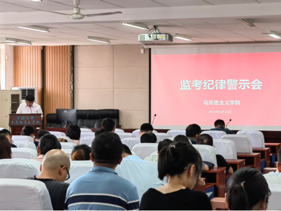 学院于 2022年6月20日上午10:00在407报告厅召开“监考纪律警示会”,要求全院教职工参加。会议由院党委书记王希俊主持。