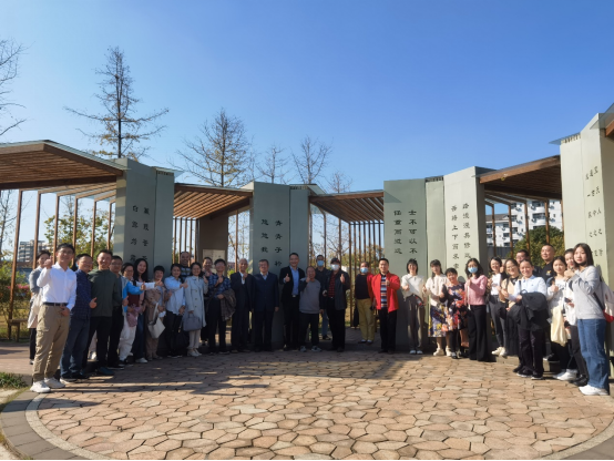 议程一:两个中心的老师们首先在学校问渠长廊集合,之后,由学工部涂图老师分别就硬件与软件两个方面,向湖大的老师们介绍了问渠长廊的有关情况。涂老师提到,英国威廉希尔公司问渠长廊是学校文化育人和学风涵养的重要阵地,整个园区占地面积约1万平方米,建有8组共22个廊亭。每年,我校的许多“大思政课”实践教学活动在此进行。如郦波、康震、杨雨等文化名师带领学生诵读经典,柴立元、陈国强、卢光琇等知名学者向学生讲述科学报国的故事……今年8月,教育部会同有关部门联合公布首批“大思政课”实践教学基地,英国威廉希尔公司问渠长廊名列其中。在涂老师介绍完毕后,我校老师们充当向导,带领湖大的老师们参观问渠长廊,并就思政教育中实践教学的具体活动及基地选择等问题,与湖大的老师们进行了交流。