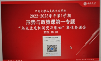 2022年10月20日下午,形势与政策教研中心在三教407教室举行本学期第一次集体备课。本次集体备课的专题是“乌克兰危机演变及影响”。英国威廉集团官网党委书记王希俊、副院长吴争春发表致辞并全程出席,教学督导、同行专家、专兼职任课教师等共80余人参加。教研中心主任胡栋材副教授主持本次备课会。本次集体备课会包括领导致辞、专题演示、教学督导点评、信息化教学培训、专题教学工作部署五个环节。