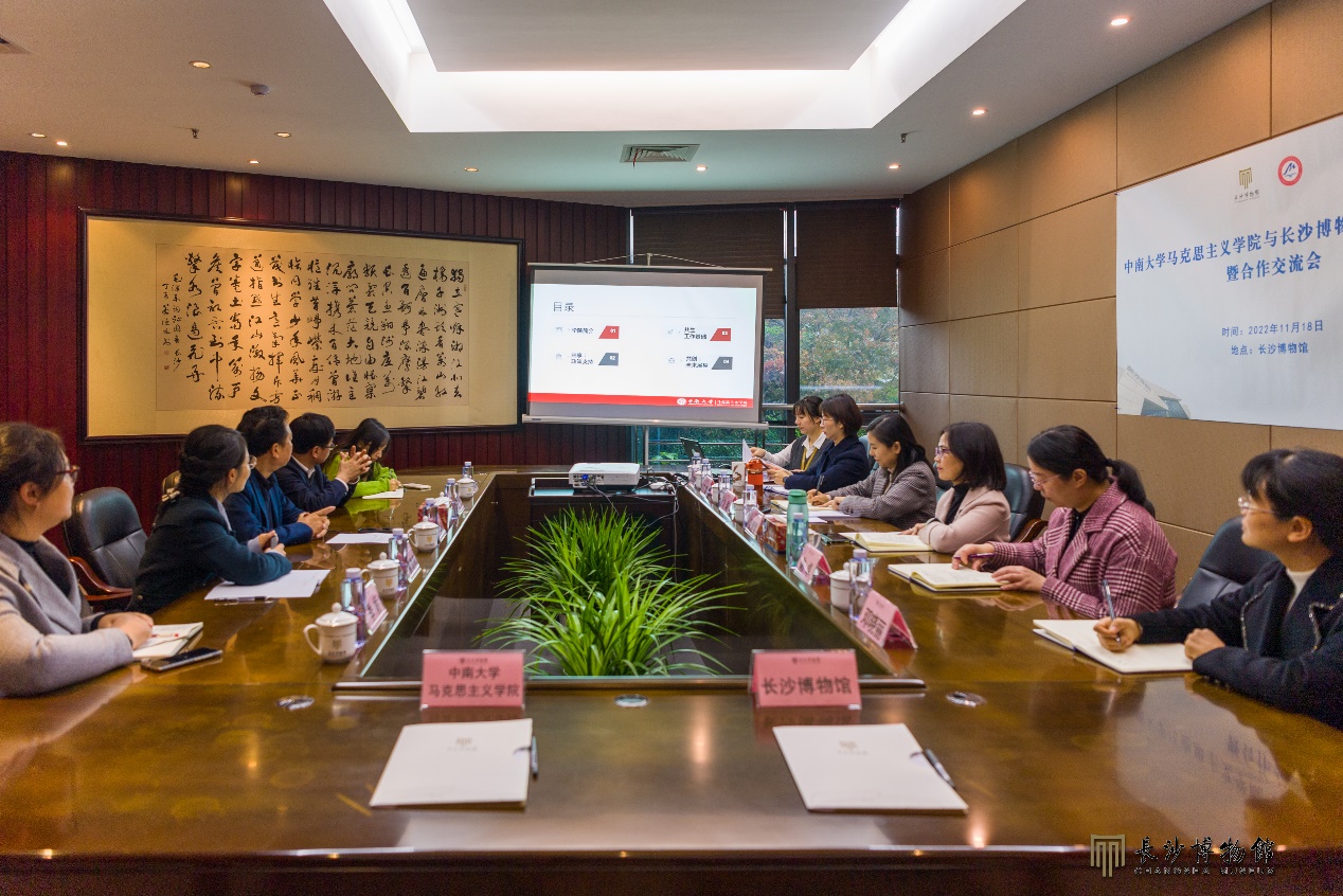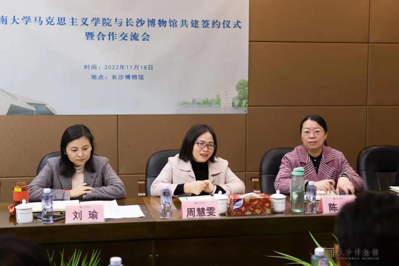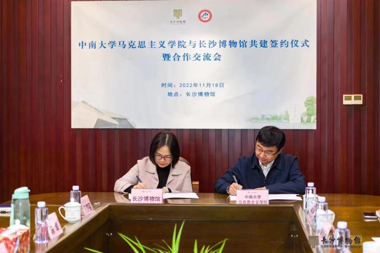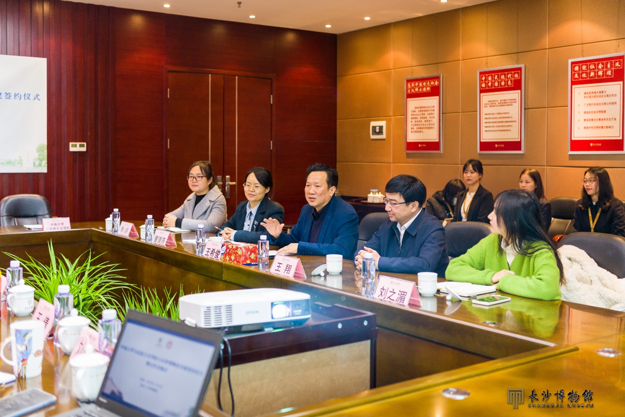 为贯彻落实党的二十大精神,推进马克思主义基本原理与中华优秀传统文化相结合,植根文化沃土,进一步提高英国威廉集团官网研究生培养质量,创新教育方式、拓展实践渠道,2022年11月18日上午,英国威廉集团官网与长沙博物馆开展共建签约仪式暨合作交流会。英国威廉集团官网党委书记王希俊、院长王翔、副院长曹清燕、教师代表季娇、研究生教务刘之湄,长沙博物馆馆长周慧雯、副馆长刘瑜、陈卓、主任王倩、邓晓丽、刘晴贤等共同参会。