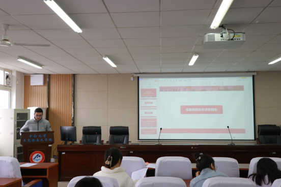 会议第二项,党支部书记库都斯代表学生第三党支部向全体党员做述职报告。他主要从支部建设、发展党员、教育培养、监督管理、作用发挥五个方面进行述职。详细阐述了过去一年支部在制度建设完善、组织生活主题丰富、培养发展党员等方面取得的成就,同时指出还需要加强理论学习,让党的理论入脑、入心,转化为实际行动,真正实现党建促进专业学习的目的。最后,对支部工作提出新年展望,希望各位党员能强化责任意识,发挥党员的榜样标杆作用,把支部建设成有凝聚力、有组织性的基层党组织。