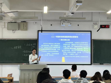 李兰兰老师这节“中国近现代史纲要”课,阐述了“中共为什么要继续革命”“中国革命新道路探索经历的艰辛”“中国革命新道路是怎样开辟的”三大问题。课程设计的问题导向很明显,逐步递进,层层深入,把听课学生带向了寻求问题答案的沉思之中。再就是叙述史实,注意到了一些细节,比如国民党新军阀统治的反动性质,有其统治下的封建士地占有的数据,有其对内残酷剝削、对外妥协投降的事实,能够说服人。还有是对中共探索新道路的讲述,既有史实,又有理论,从两个维度的结合上展开,显示了思政课的特色。尤其喜人的是,李兰兰老师一改平日讲授的风格,这次公开课有了一些激情的表达,声音响亮些了,有令人耳目一新的感觉。