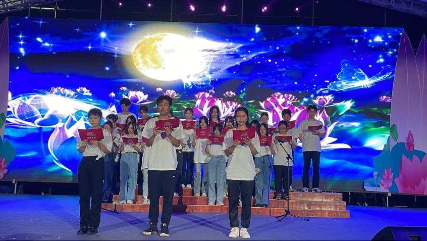 思政2101班的集体朗诵节目《荷塘月色》作为压台节目出场,为整场晚会划上圆满句号。在朗朗的诵读声中,河坝镇的“荷”之美与风华正茂、向上向善的中南学子意气融为一体,带给观众朋友们不一样的文化体验。