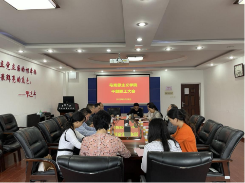 9月28日上午9:00,马克思主义学院在520会议室召开干部职工会议,校党委副书记李景升同志、党委党校常务副校长兼组织部副部长赵永正同志,学院全体领导班子成员、组织员、辅导员参加会议。会议由学院党委书记汪平同志主持。