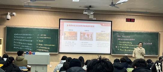 12月13日上午,马克思主义基本原理中心罗惠敏老师公开课在新校区C103教室举行,督导专家孙梦云教授和学院近30位教师参与了本次听课、评课活动。罗惠敏老师公开课主题为《马克思剩余价值理论与经济危机》,课堂导入以问题调查的形式进行,了解学生们对资本主义社会是否终将灭亡和为何终将灭亡两个问题的看法,从“资本主义制度如何产生?”“劳动力为何成为商品和货币如何转化为资本?”“关于剩余价值的六个问题”和“资本主义基本矛盾何在以及经济危机频繁爆发的原因为何”四个方面层层深入,剖析了资本主义社会的剥削关系的本质。在教学设计中,罗惠敏老师以第一次全国劳动大会的视频紧扣授课内容,采用设问反问等形式引导学生积极讨论,引发了学生对于人工智能时代劳动价值论是否过时、剩余价值来源为何等问题的深入思考。教学目标明确,内容准备充分,课件制作精良,学生参与度和投入度较高。