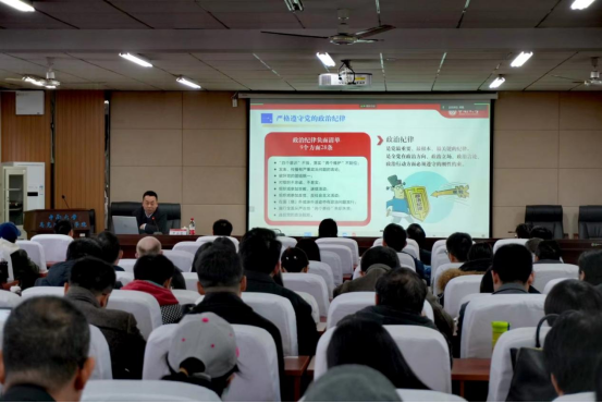 罗永忠从保持清醒头脑、自觉遵守廉政“红绿灯”,明纪知纪守纪、从紧从严从实恪守纪律,强化责任担当、营造风清气正发展环境三个方面出发,结合《中国共产党纪律处分条例》,以政治纪律、组织纪律、廉洁纪律、群众纪律、工作纪律、生活纪律六大纪律为主旨内容,通过严肃又不失活泼、幽默又不失内涵的语言,分析了多个违法违纪典型案例,引导广大师生员工知敬畏、存戒惧、守底线。宣讲主题鲜明、内容丰富、精辟透彻、深入浅出,用摆事实、讲道理的方式帮助听众深化了对“尚廉”“践廉”的理解。