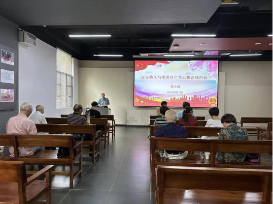 党日活动的第二项内容,是聆听马院党委老龄委员、周小清副院长讲党课,主讲的题目是“延安整风与中国共产党思想路线的确立”。周院长从理论与实践两个方面,讲解了从1941年春开始,毛泽东在延安高级干部会议上作《改造我们的学习》报告开始,到1945年4月20日六届七中全会通过的《关于若干历史问题的决议》为止、长达4年的延安整风运动,他具体诠释了延安整风运动产生的社会历史条件、内容、过程。他认为,延安整风运动作为百年党史上极其重要的一页,既是中共党史上的一个伟大创造,亦是国际共运中的一个创举。延安整风运动始终坚持马克思主义同中国具体实际相结合的正确原则,破除了党内把马克思主义教条化、把共产国际决议和苏联经验神圣化的错误倾向。在谈到延安整风运动的重要意义时,他说,通过延安整风运动,使全党、尤其是党的高级干部对中国新民主主义革命的性质、任务、目标、路线和纲领有了明晰的认识,全党思想达到了在马克思主义理论基础上的高度一致,为夺取抗战胜利和新民主主义革命的胜利,奠定了重要的思想政治基础。