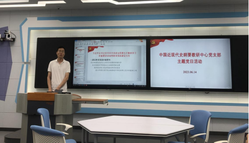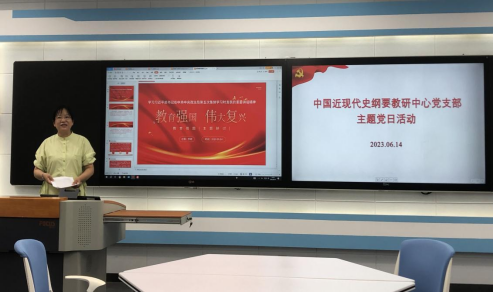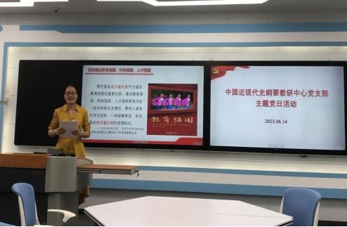 2023年6月14日,中国近现代史纲要教研中心党支部于学院408教室开展主题党日活动,重点学习习近平总书记在中共中央政治局第五次集体学习时的重要讲话精神,具体围绕教育强国主题进行研讨。本次主题党日活动由李斌、李兰兰、梅乐三位同志主讲发言。