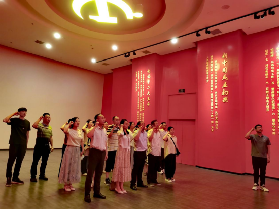 在宣誓厅,全体党员重温入党誓词,铮铮誓言又一次直抵内心、触动灵魂。在视听教学区,大家集中观看了党性教育片《信仰》,蔡和森、杨开慧、陈树湘等革命烈士的英雄事迹,令全体党员感慨敬佩、深受震撼。