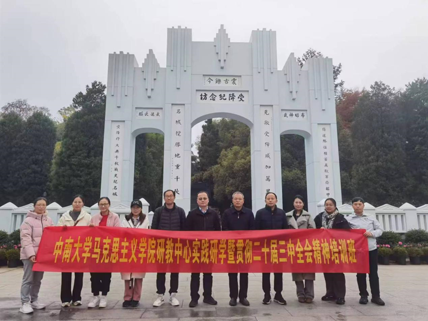 为了深入贯彻学习党的二十届三中全会精神,不断提高思政课的针对性和吸引力,12月7日至8日,研教中心任课教师、研究生思政课负责人在胡栋材副院长带领下,赴芷江、花垣等地开展“沿着总书记的足迹前行”实践研学活动。