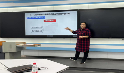 刘颖老师也以说课的形式对其授课安排进行了详细的讲解。刘颖老师的授课形式包括讲师讲解、视频、课堂讨论、学习通互动等形式。在授课过程中,她选取了一些学生熟悉并且比较贴切的案例来讲授相关知识点,比如在“科学技术与经济转型”这一部分中使用“科学技术与中国快递业的迅速崛起”这一案例,这一案例能大大提高学生的课堂专注度及参与课堂互动的积极性。这一案例的选取得到了课程负责人黄炎平老师的肯定。刘利乐老师分享了自己在讲授《自然辩证法概论》课程中的一些心得,并对今后的授课和集体备课提出了一些建议。