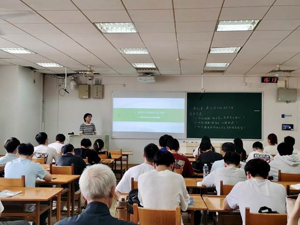 在讲授环节,黄老师聚焦授课主题,围绕“新时代为什么突出强调建设生态文明”“建设什么样的生态文明”“怎样建设美丽中国”,深刻阐释了习近平生态文明思想的主要内容,并且紧密联系学生所学专业进行有针对性地互动,引发学生自主探索以矿物加工为代表的传统产业的绿色转型之路,同时,引发学生理性思考当前国际社会上有关碳排放权交易的问题,帮助学生树立社会主义生态观,增强对我国实现发展方式绿色转型、完成“双碳”承诺的信心。